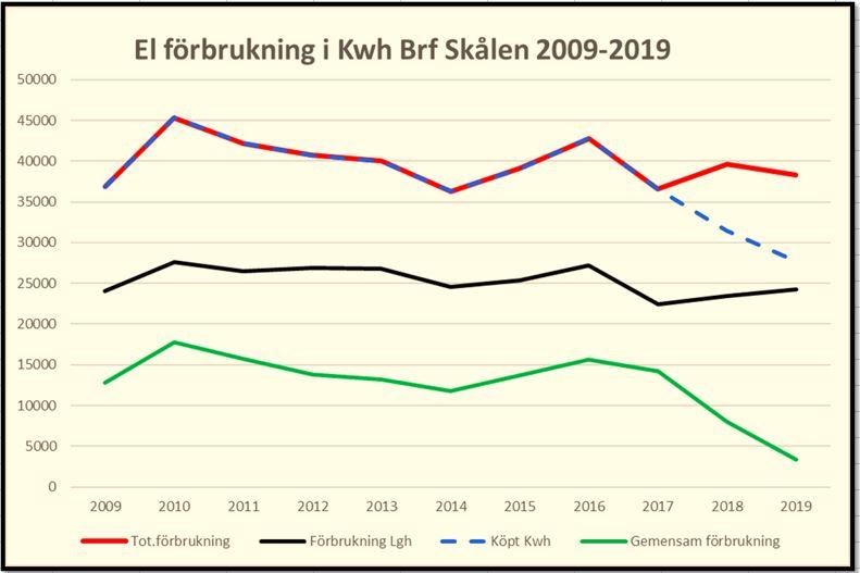 El konsumtion i Kwh Brf Skålen 2009-2019 | |||||